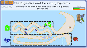 Learn about the organ systems found within multicellular organisms by playing through six unique minigames. Each minigame lets the student actually play as the system being explored. For example, the player will protect organs from bacteria when learning about the epithelial system by building loops of tissue. Similarly, the student will get to race around the circulatory system delivering oxygen to other organs in an educational racing minigame.